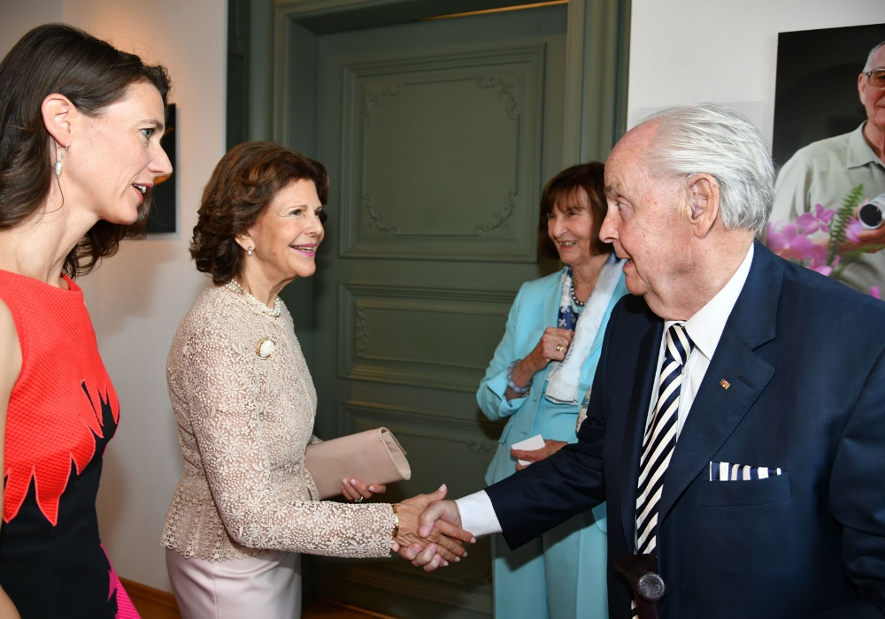 Ihre Majestät Königin Silvia von Schweden begrüßt Senator Dietrich H. Boesken anlässlich des Mentor-Events 2019 auf der Insel Mainau – v. l. Gräfin Bettina Bernadotte, I.M. Königin Silvia, Ursula Boesken und Senator Dietrich H. Boesken.)